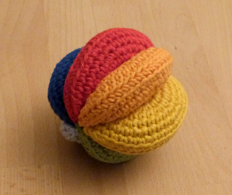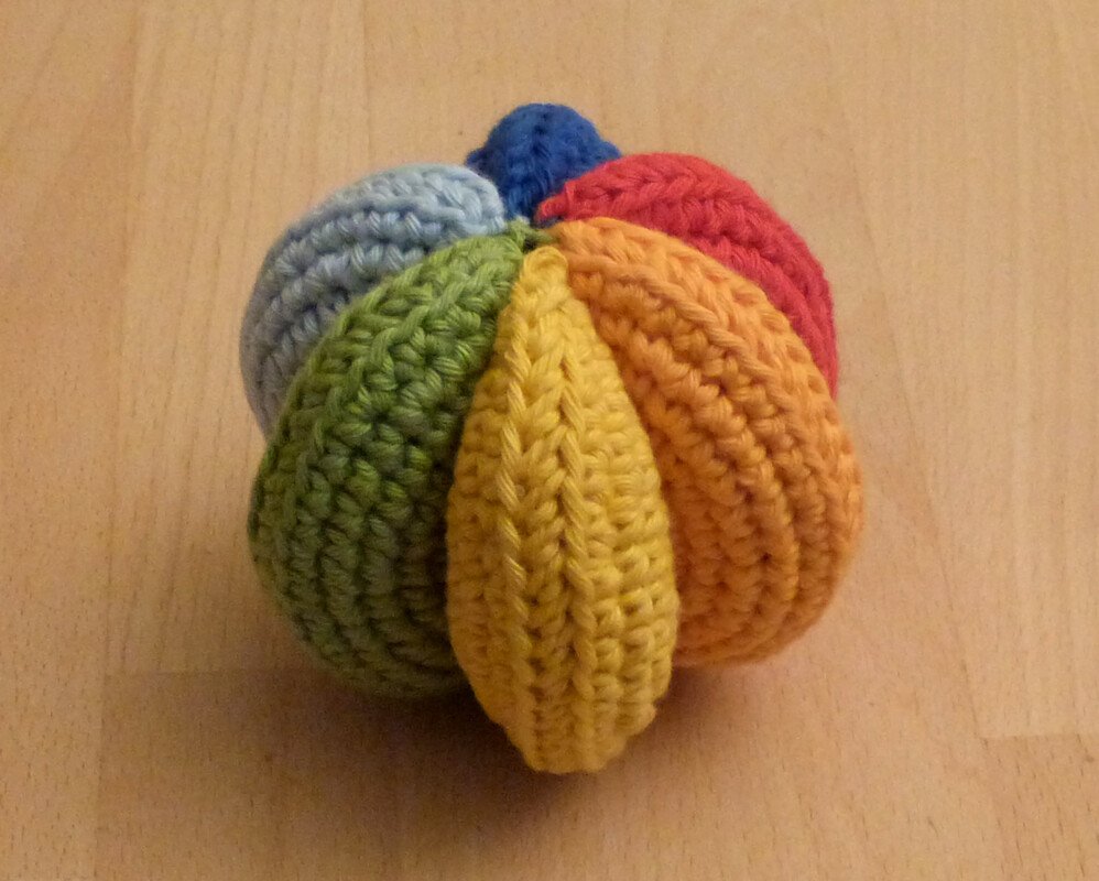 Der Greifball ist ein tolles Spielzeug für bewegungsfreudige Babys ab ca. 6 Monaten und bietet viele Möglichkeiten, motorische und sensorische Fähigkeiten zu trainieren: Man kann ihn fühlen, greifen, sehen, werfen, rollen und hinterher krabbeln. Das gehäkelte Spielzeug ist leicht und es geht nicht kaputt, wenn es mal runterfällt!