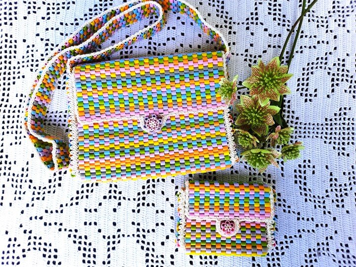 Und wer sagt, dass nicht auch Erwachsene ein buntes Täschchen haben dürfen? Das kleinere eignet sich zum Beispiel gut zum Aufbewahren all der kleinen Visiten- und sonstigen Karten, die sich so ansammeln.