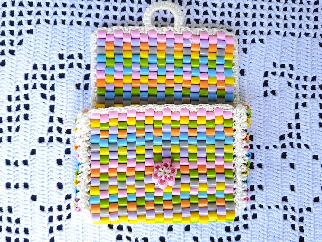 Als meine Tochter aus dem Bügelperlen-Alter herausgewachsen war, hatten wir noch ziemlich viele Perlen übrig und ich habe mich gefragt, ob man damit nicht noch was anderes machen könnte als Bügelmotive zum Aufhängen. Zur Idee mit den Täschchen haben mich die Topfuntersetzer aus meiner Kindheit inspiriert, die man damals aus Glasperlen gefädelt hat. Beim Tüfteln herausgekommen sind dann diese witzigen Täschchen. Allerdings handelt es sich dabei nicht um eine Anleitung zum Basteln mit Kindern, denn der Häkelteil ist schon etwas knifflig. Aber Teamwork geht: Das Fädeln der Taschenteile ist für Kinder gut machbar, den "Zusammenbau" übernimmt dann besser ein/e Erwachsene/r.