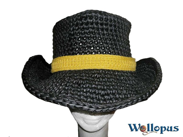 Cowboyhut: Breiter Hut mit hoher Krone und Krempe, der ursprünglich von Cowboys getragen wurde. Heute ein beliebtes Accessoire für Western-Fans und Festivals.