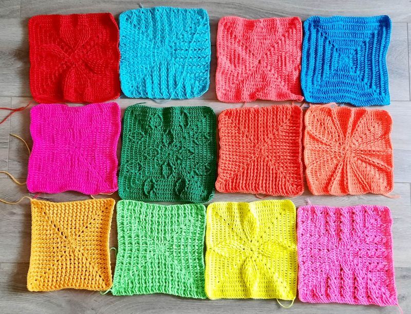 Es gibt 12 verschiedenen Grannys, je nach Modell welches gehäkelt wird ändert sich die Anzahl der Grannys.
