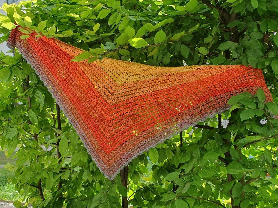 Die Anleitung ist sehr verständlich beschrieben und es fällt mir leicht, das Tuch zu häkeln. Noch ist es nicht fertig, aber ich komme gut voran.