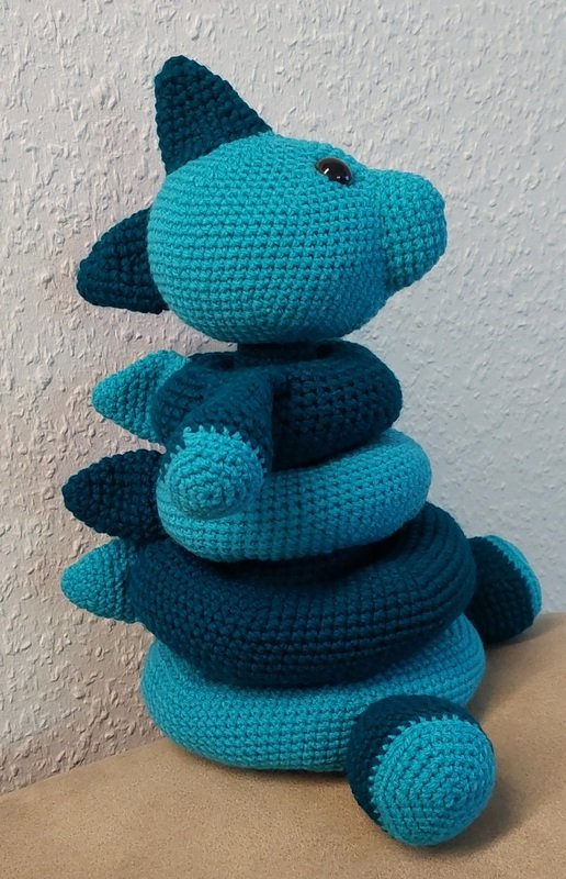Stapelspielzeug für Babys und Kleinkinder. Der süße Dino freut sich auf die kleinen Hände die mit ihm spielen.