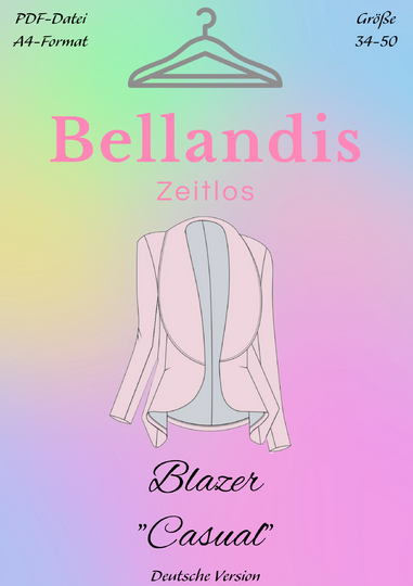Schnittmuster Blazer "Casual" von Bellandis mit illustrierter Anleitung - eBook im A4 Format in den Grüßen 34 - 50.