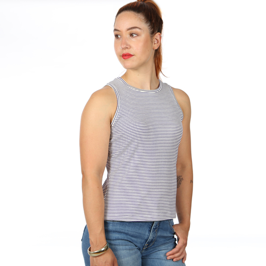 FRAU MEJA ist ein Basicteil für alle Gelegenheiten. Ob drunter oder drüber, dieses kurze, körpernahe Top macht immer eine gute Figur. Das Armloch ist leicht ausgehöhlt und gibt ihm einen modernen Shape. Der halsnahe runde Ausschnitt wird ebenso wie die Armlöcher mit schmalen Bündchen versäubert. FRAU MEJA ist ein Top für viele Gelegenheiten, das Du chic oder sportlich stylen kannst.
