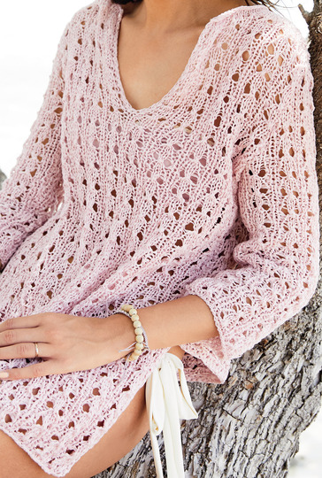 Dieser Pullover ist perfekt geeignet, wenn du noch nach einem Modell suchst, bei dem du dich am Ajourmuster versuchen kannst, ohne zu verzweifeln. Das Muster ist grafisch und einfach zu lernen. Die Anleitung enthält alles, was du wissen musst, um deinen Traumpullover zu stricken. Alle Teile werden einzeln von untern nach oben gearbeitet. Nur keine Scheu, lade hier direkt alles Nötige herunter und fang gleich in Größe 38/40 oder 46/48 an. Ddie benötigte Nadelstärke ist 5 (Maschenprobe natürlich nicht vergessen!). Viel Spaß mit deinem tollen neuen Sommerpullover.