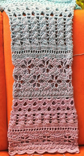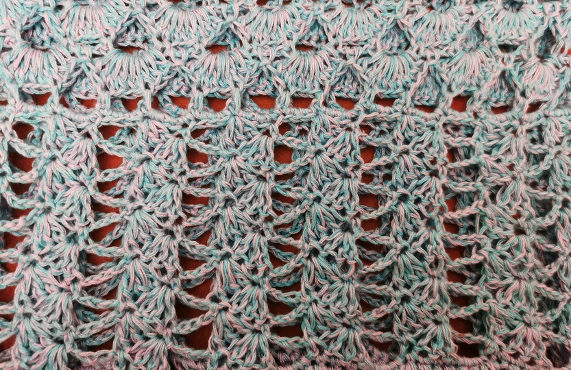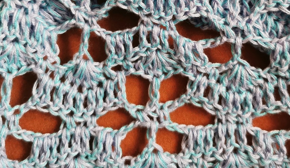 Ihr könnt den nicht transparenten Teil so weit häkeln, wie ihr wollt, der tolle Mustermix beginnt genau dort, wo ihr ihn haben möchtet.