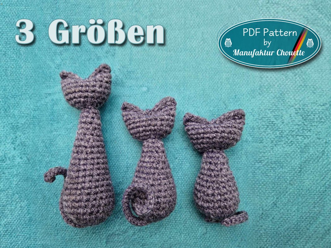 Diese deutsche Anleitung erklärt Dir Schritt für Schritt ganz ausführlich, wie eine Glückskatze aus Garn-bzw Wollresten gehäkelt wird. Je nachdem, welches Garnstärke Du verwendest, wird die Glückskatze 3 cm (Filetgarn Variante klein) bis 18 cm (Chenille Variante groß) groß.
