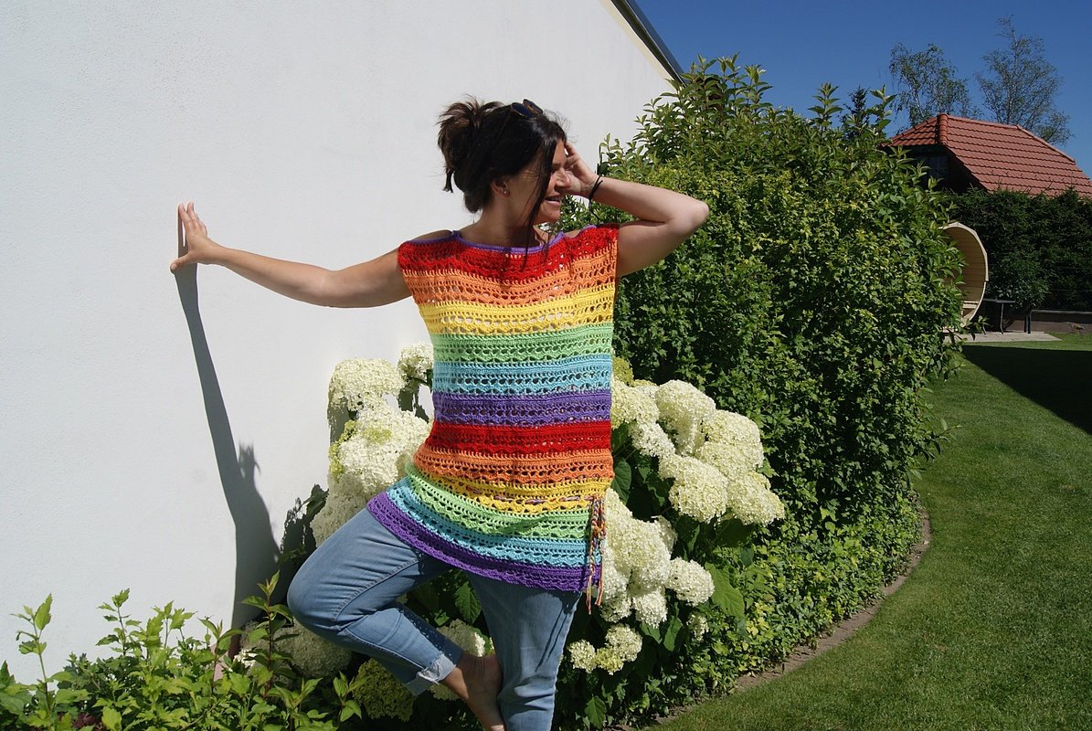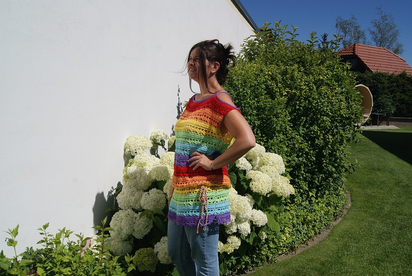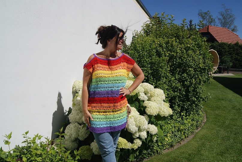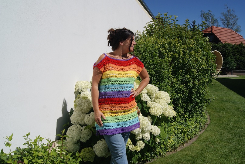 Bequemes, farbenfrohes Häkel-Longshirt mit wunderschönen Details in Oversize-Optik passt perfekt in die warme Jahreszeit ist ein garantierter Hingucker! Flott gehäkelt und auch als Sommerkleidchen tragbar, kann man sich bald darauf freuen, es auszuführen!