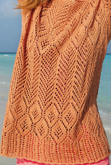 Dieser Pullover macht richtig gute Laune. Ob das wohl am sonnigen Orange oder am delikatem Lochmuster liegt, wissen wir nicht, Fakt ist, dass das Stricken dieses Projektes richtig gut tut. Und das Endergebnis kann sich sehen lassen. Hier finden ambitionierte Stricker ein tolles Muster, welches sich über den kompletten Pullover zieht. Dies macht die Nacharbeitung spannend und es kommt auf keinen Fall Langeweile auf. Hilfreich bei der Umsetzung ist natürlich die detailierte und super lesbare Strickschrift in der Anleitung. Daneben enthält diese noch den Schnitt und selbstverständlich alle Arbeitschritte und Musterbeschreibungen. Alle Teile werden einzeln gestrickt und zusammengenäht.