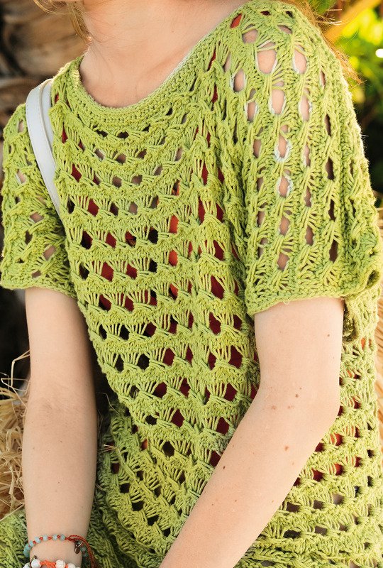 Diese Tunika wirst du lieben. Sie ist locker und luftig und sitzt dabei durch die direkt mitgestrickten Ärmel einfach wunderbar. Das griffige und dennoch fließende Baumwollgarn gibt es bei LANA GROSSA und du benötigst Nadeln in der Stärke 3,5 und 4. Jetzt noch schnell die Anleitung gedownloaded und schon kann es in Größe 36/38, 40 oder 42/44 losgehen. Vorder- und Rücenteil werden separat von unten nach oben gestrickt. Dabei werden die Ärmel gleich mitgearbeitet. Danach werden die Teile zusammengenäht und der Halsausschnitt umhäkelt. Klingt gar nicht so kompliziert oder? Bei der Umsetzung hilft dir die genaue Anleitung mit Schnitt und Strickschrift.