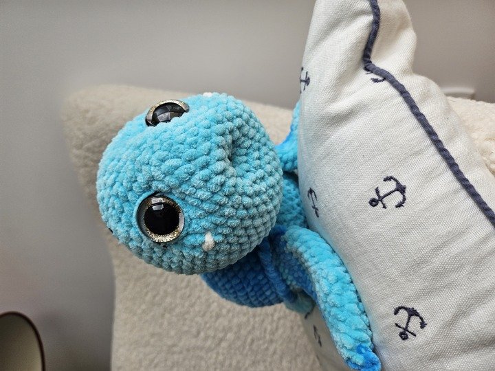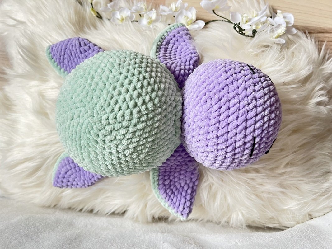 Man kann sie mit Chenille- oder Baumwollgarn häkeln.