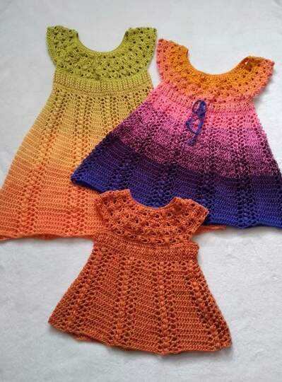 In dieser detailreichen Anleitung wird Schritt für Schritt erklärt, wie ihr dieses Kleidchen für eure Prinzessin nachhäkeln könnt. Das Kleid beginnt mit einer Rundpasse von oben und kann nach Belieben entweder als Shirt/ Tunika, Kleidchen oder Maxikleid gehäkelt werden.