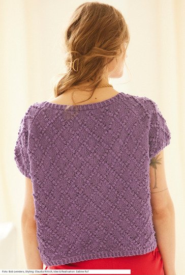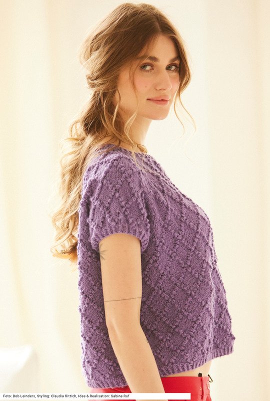 Für das Top:**- LANGYARNS **"Ortica" (82 % Baumwolle, 18 % Brennessel, LL = 105 m/50 g)- 400 (450) 500 g Violett (Fb 0046)
