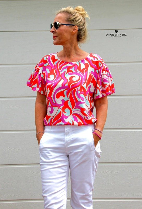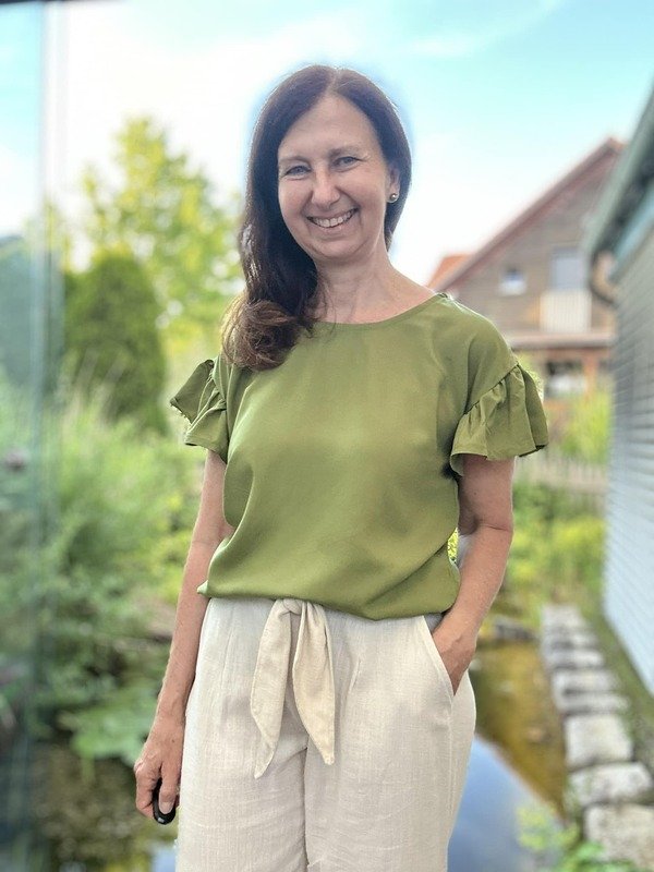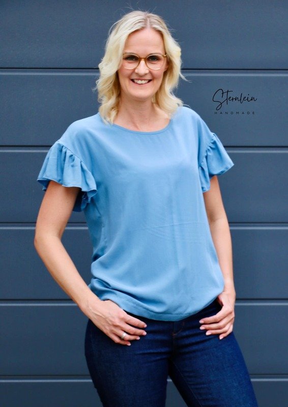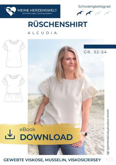 Mit dem Rüschenshirt Alcudia kreierst du mühelos einen romantischen Look, der dich verzaubern wird. Dieses vielseitige Schnittmuster bietet dir die Möglichkeit, eine lässige Bluse mit verspielten Rüschenärmeln zu gestalten, die perfekt für warme Tage geeignet ist. Ob du dich für eine schlichte Variante oder eine mit zusätzlicher Rüsche am Saum entscheidest, bleibt ganz dir überlassen. Dank der lockeren Passform und der Auswahl an fließenden Stoffen wie Baumwolle, Viskose oder leichtem Leinen kannst du mit Alcudia vielseitige Tragemöglichkeiten entdecken und deinen eigenen Stil zum Ausdruck bringen. Auch Musselin eignet sich hervorragend für diese Bluse, die dann etwas voluminöser ist. Selbst Viskosejersey ist eine Option, wenn du eine Nummer kleiner nähst.