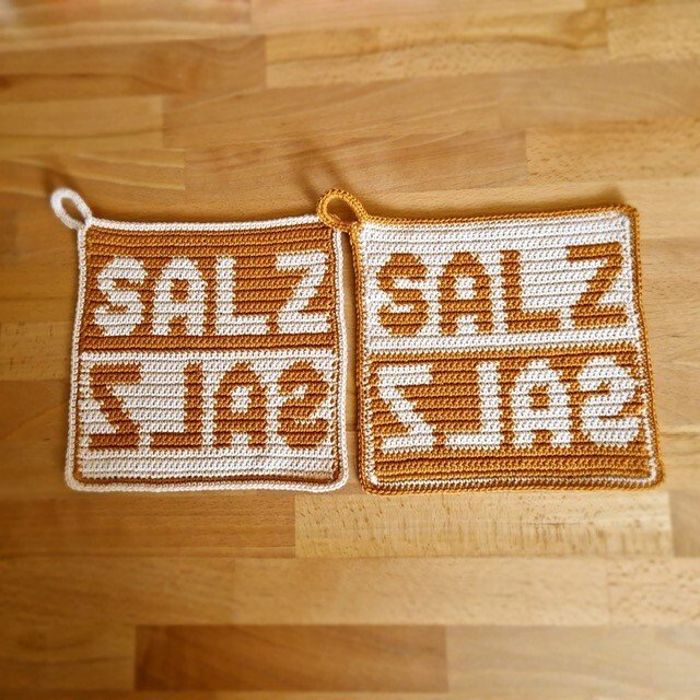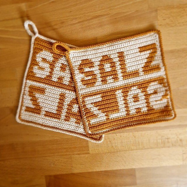 Diese Topflappen sind der Klassiker unter den gehäkelten Topflappen. Sie schützen die Hände nicht nur vor z.B. zu heißen Topfgriffen, sondern sie verschönern auch jede Küche. Gleichzeitig können sie auch als Untersetzer verwendet werden.