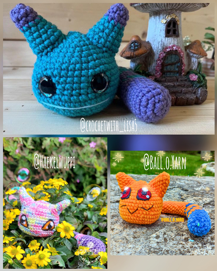 Diese digitalen Kreaturen, die sich entwickeln und wachsen, inspirieren mit ihrer Vielfalt und Kreativität. Mit meiner Anleitung kannst du nun deine eigenen Lieblings-Digital-Monster als süße, handgemachte Babymonster nachhäkeln und ihnen durch Nadelfilzen einen besonderen Touch verleihen. Alternativ findest du in der Anleitung Instruktionen, um Augen zu häkeln.