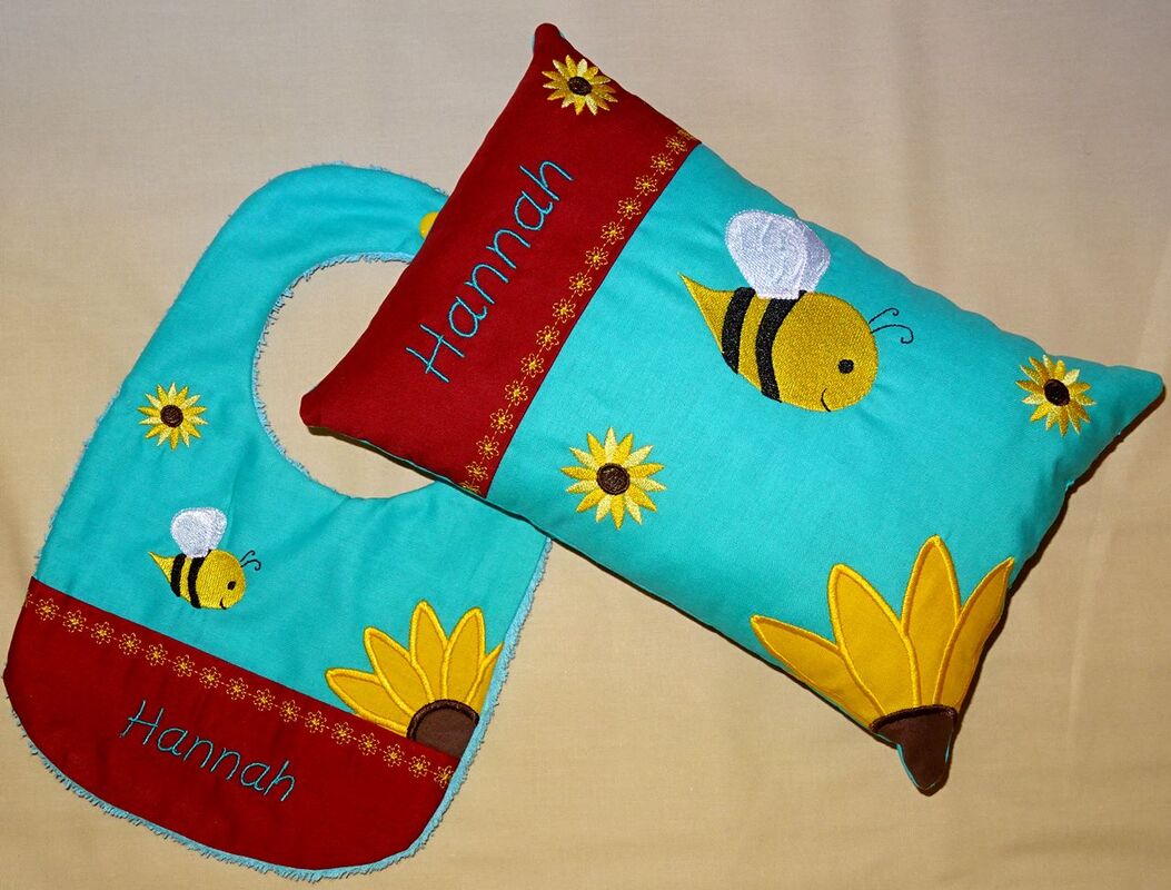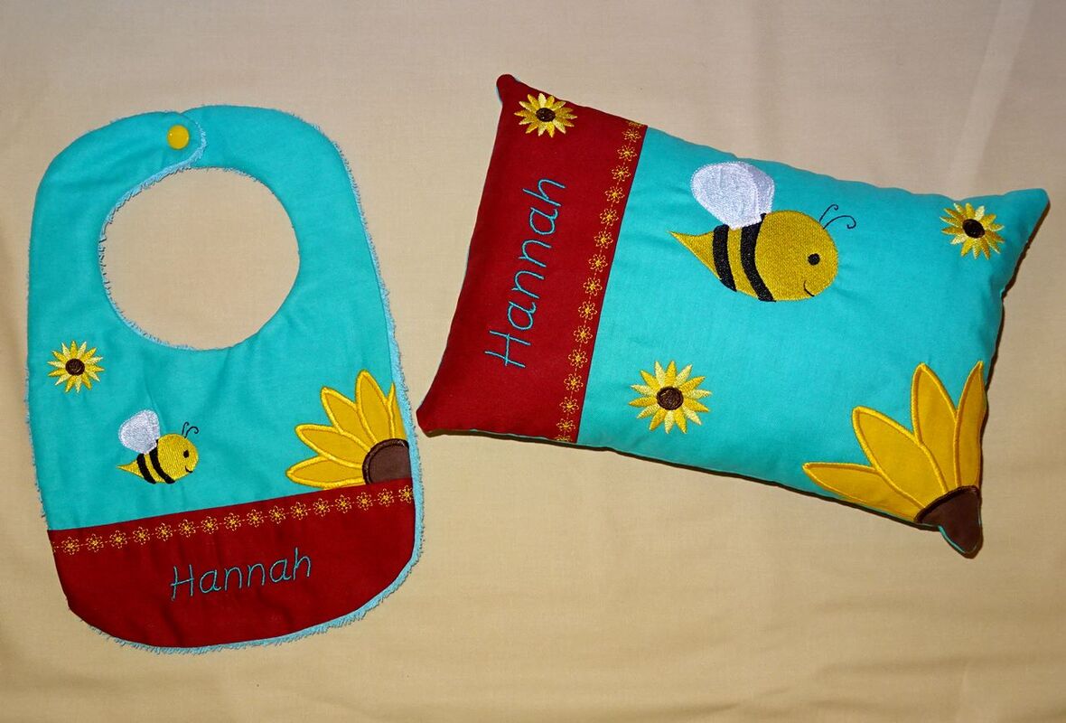 Stickdatei - Kissen und Lätzchen SET ITH - mit allerliebstem Bienchen und Sonnenblume