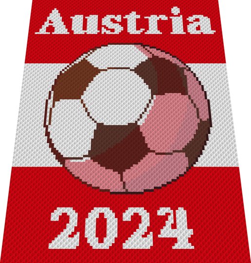 Austria 2024 ist ein digitales Diagramm, das für verschiedene Häkeltechniken verwendet werden kann, hier speziell für Ecke zu Ecke = C2C oder Mini C2C.
