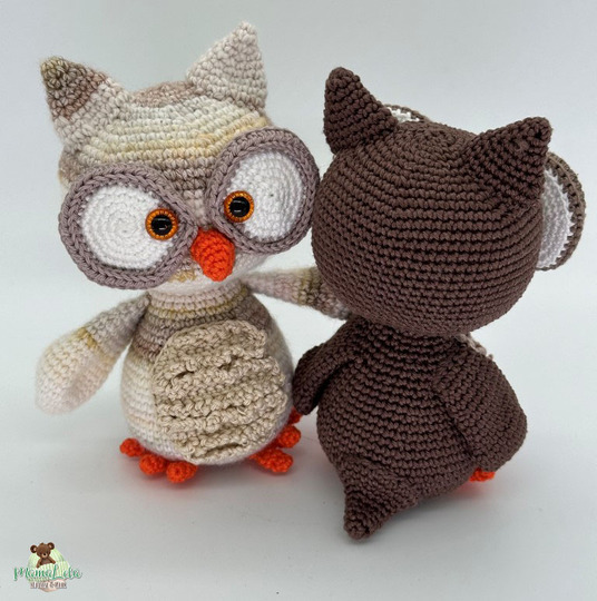 Mit den angegebenen Materialien wird die Eule in beiden Varianten ca. 15 cm groß.