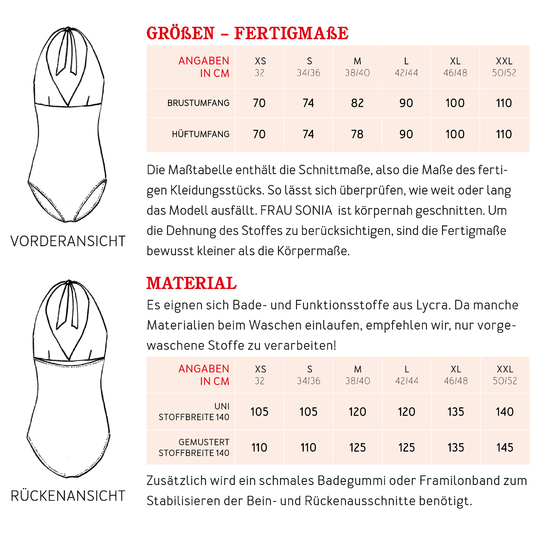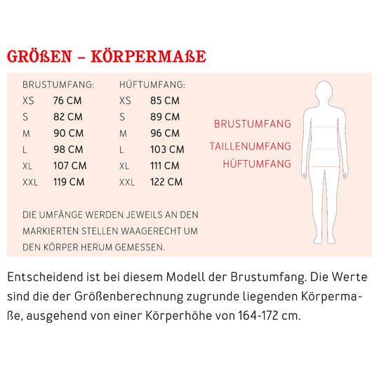 6 Doppelgrößen XS (32) bis XXL (50/52)