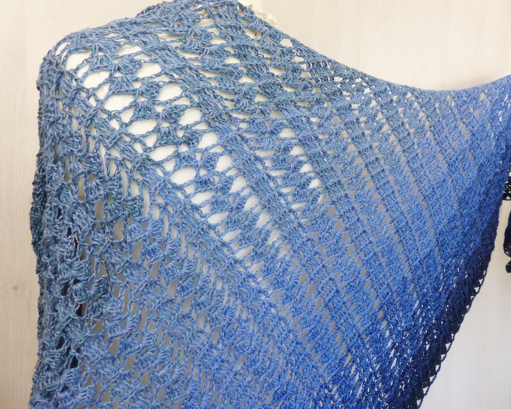 Somit entsteht ein einzigartiges Tuch, das sowohl als Schal, Stola oder Schultertuch getragen werden kann. Und das Tuch ist super schnell gehäkelt, das Muster ist auch fernsehtauglich.