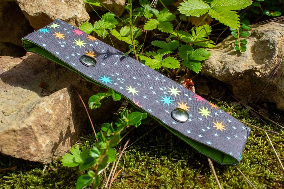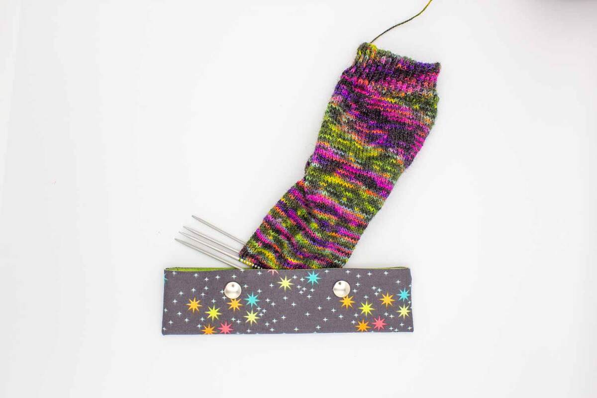 Somit passt ein 20cm Nadelspiel perfekt hinein, aber auch ein 15cm Nadelspiel kann darin verstaut werden, da die Druckknöpfe so positioniert sind, dass das Nadelspiel nicht herausrutschen kann.