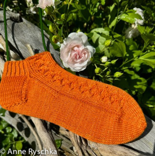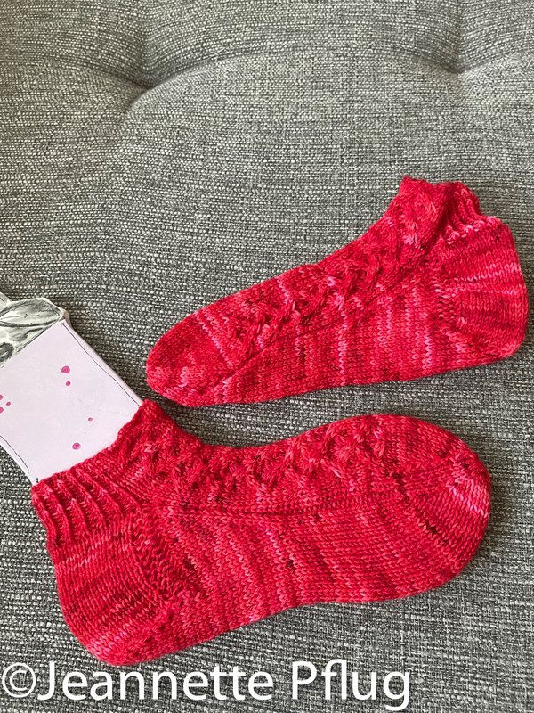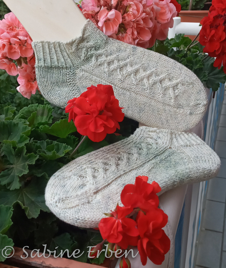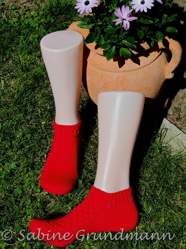 Die PDF Datei enthält die Anleitung für die oben beschriebenen Sneakersocken für die Größen 36/37, 38/39 und 40/41.