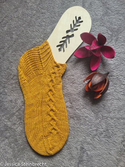 Du benötigst 4-fädiges Sockengarn mit einer Lauflänge von 400/420m pro 100g.
