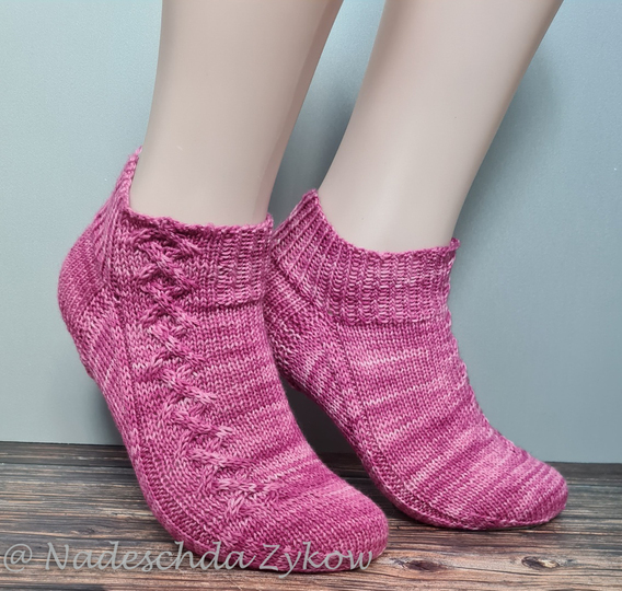 Ein seitliches, süßes kleines und einprägsames Zopfmuster zieren diese Sneakersocken.
