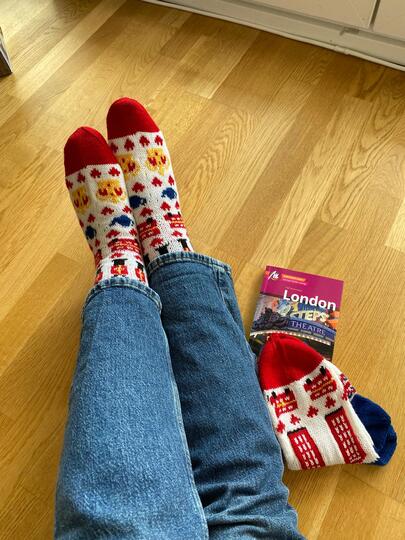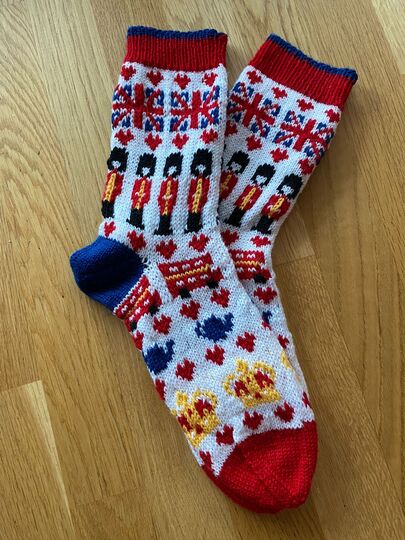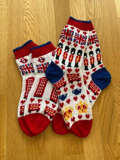 Die Anleitung enthält keine genaue Anweisung, in welcher Reihenfolge die London-Motive gestrickt werden sollen. Sie enthält aber zwei Beispiel-Socken, die zur Inspiration dienen sollen.