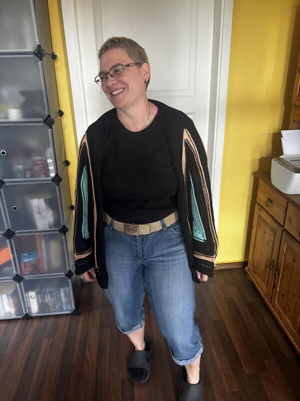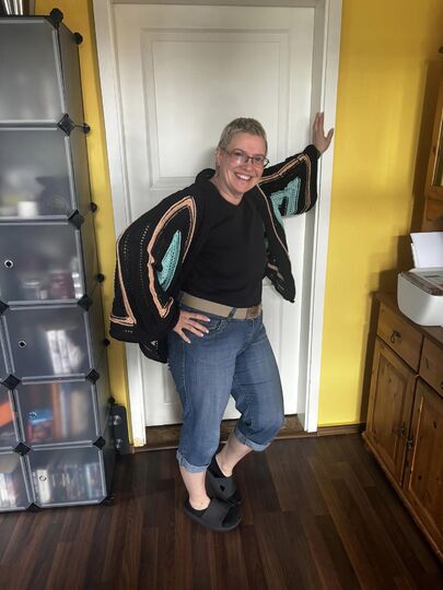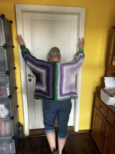 • Außerdem Körpermaße. Entweder eure eigenen – so könnt ihr auch problemlos immer wieder mal anprobieren oder ranhalten. Ansonsten braucht man: Halsausschnitt, Länge Arm, Umfang Handgelenk, Körperumfang an der breitesten Stelle, Wunschlänge Rücken, Kopfumfang, falls eine Kapuze ran soll