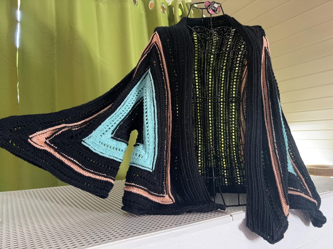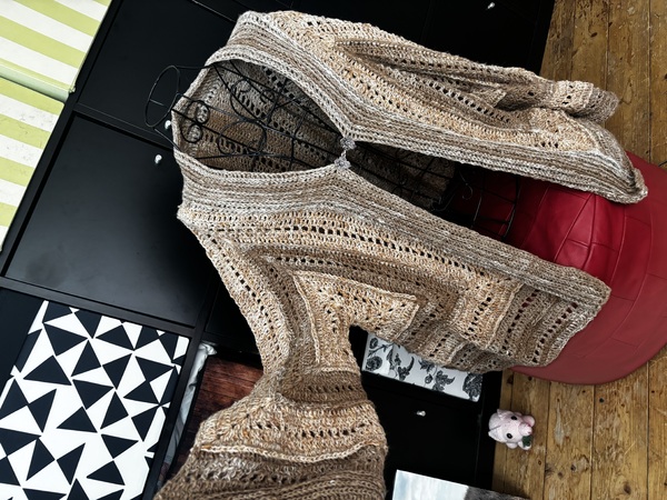 • Pro Seite für Gr 38/40 (M) ca 1000m 4fach Garn oder dementsprechendes Material. Wer es größer oder länger mag/braucht sollte mit 200m mehr pro Seite und Größe rechnen. Für eine Kapuze vorsichtshalber nochmal 500m extra rechnen. Kommt ja immer auf die Größe an.
