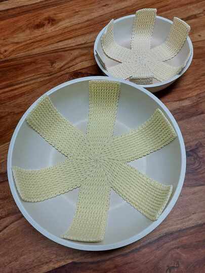 Mit dieser Anleitung lassen sich praktische Pfannenschützer in zwei verschiedenen Größen häkeln.