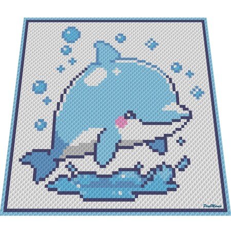 Delfin ist ein digitales Diagramm, das für verschiedene Häkeltechniken verwendet werden kann, hier speziell für Ecke zu Ecke = C2C oder Mini C2C.
