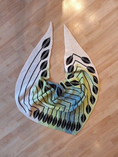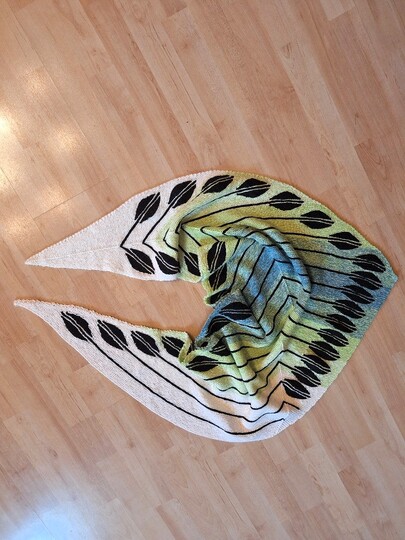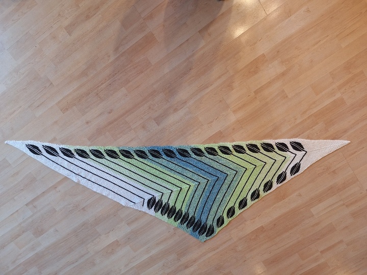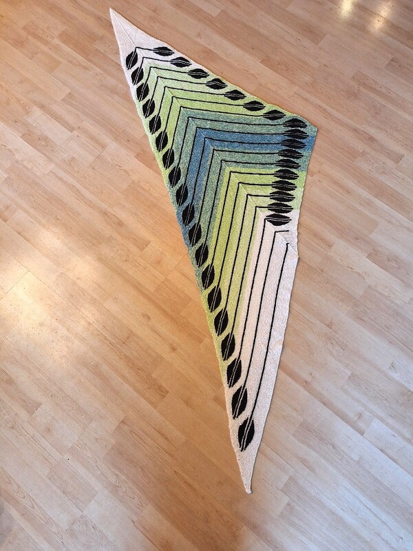 Das Tuch besteht fast nur aus verkürzten Reihen