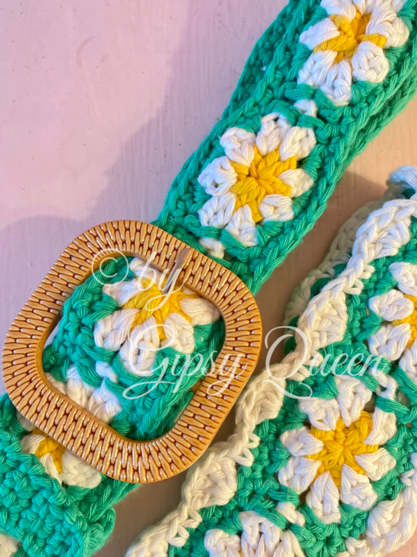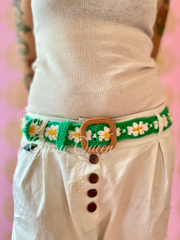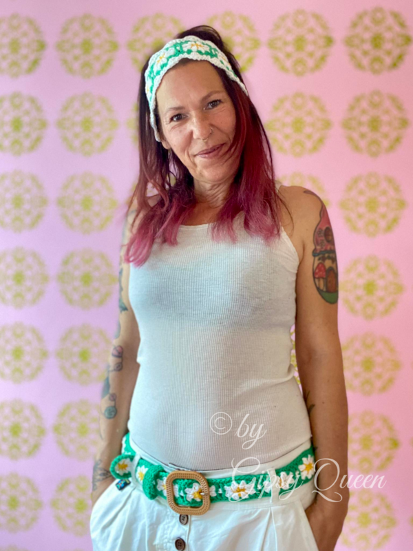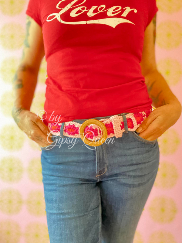 eine Gürtelschnalle - diese findest Du auf meiner Materialliste auf meiner Website, link dazu un meiner Häkelanleitung