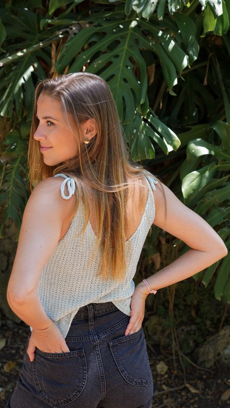 Das verträumte Top “Strelezia” erhielt seinen Namen durch die Pflanze “Strelezie”. Auf portugiesisch heißt Strelezie nämlich Strelezia. Ebenso anmutig wie das Gewächs, besticht das Trägertop mit seinem zeitlosen Design und durch kleine Besonderheiten. Das unterbrochene Rippenmuster umschmeichelt jede Figur und die gestrickten Kordeln lassen sich zu dekorativen Schleifen binden. Diese sind nicht nur ein Eye-Catcher, sie helfen dir ebenso die tiefe deines Ausschnitts nach Lust und Laune anzupassen. Das Top ist sowohl für Anfänger, dank der ausführlichen Videoanleitung, als auch für fortgeschrittene Strickerinnen wunderbar geeignet. Die ausgewählte Solo Lino ist ein feines Garn, welches aus 80 % recycelter Leinen und 20 % Leinen besteht. Es hat einen tollen Glanz und ist in wunderschönen, sommerlichen Farben erhältlich. Das tolle an Leinen ist, dass es sehr reißfest ist und einen kühlenden Effekt hat, da es bis zu 35 % Luftfeuchtigkeit aufnimmt. Außerdem ist die Produktion meist deutlich umweltschonender als Baumwolle.