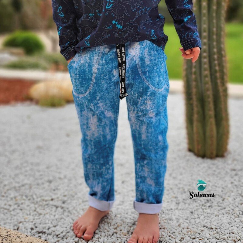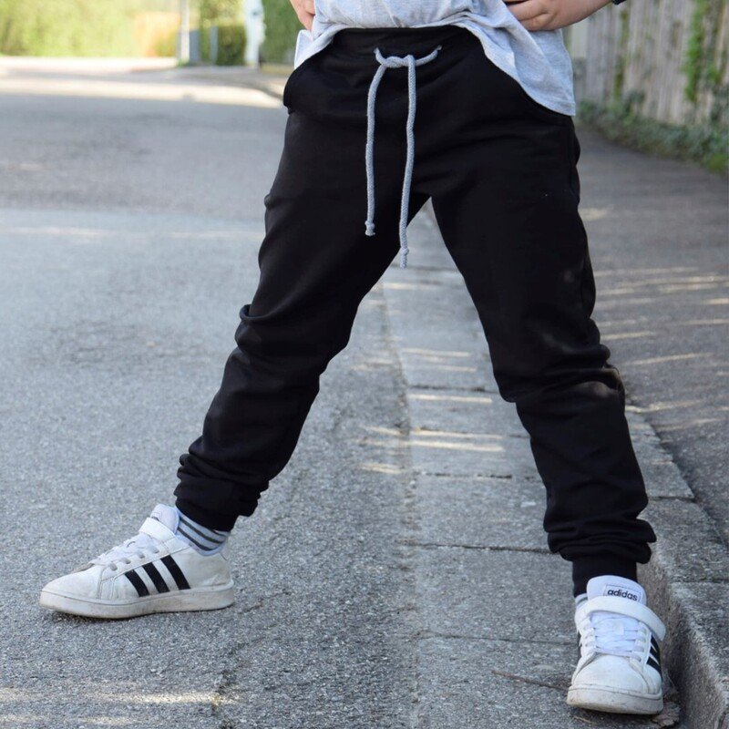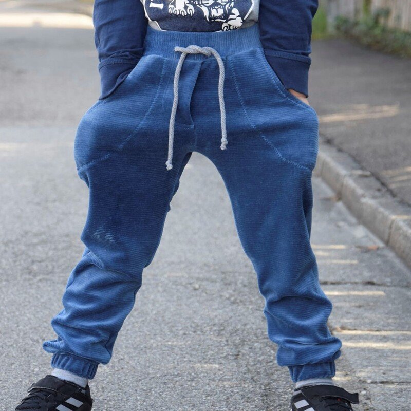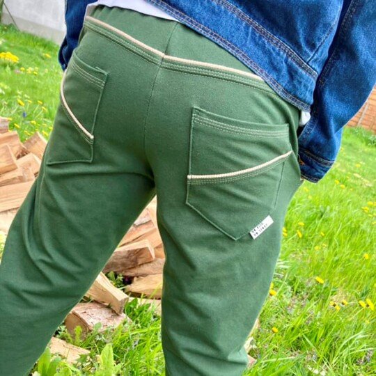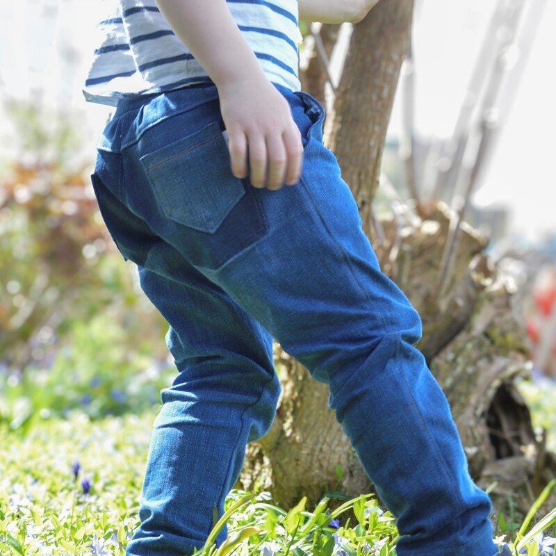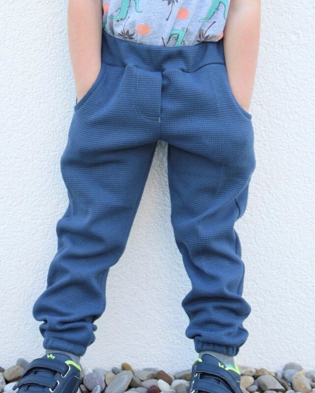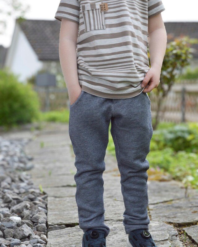 Die Hose ist für (leicht) dehnbare Stoffe wie Jersey, French Terry, Sweat oder Stretch-Jeans ausgelegt.