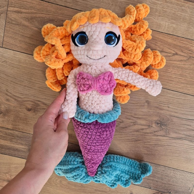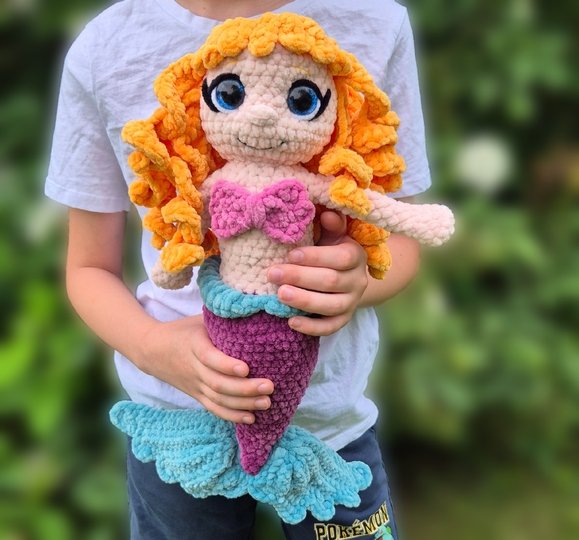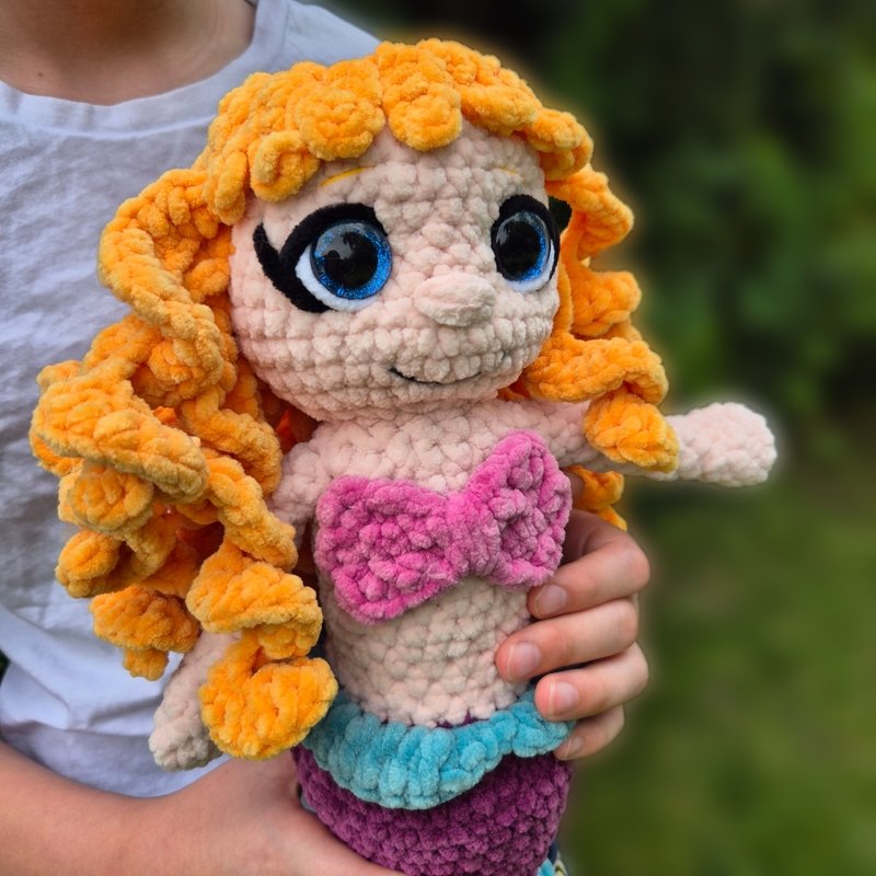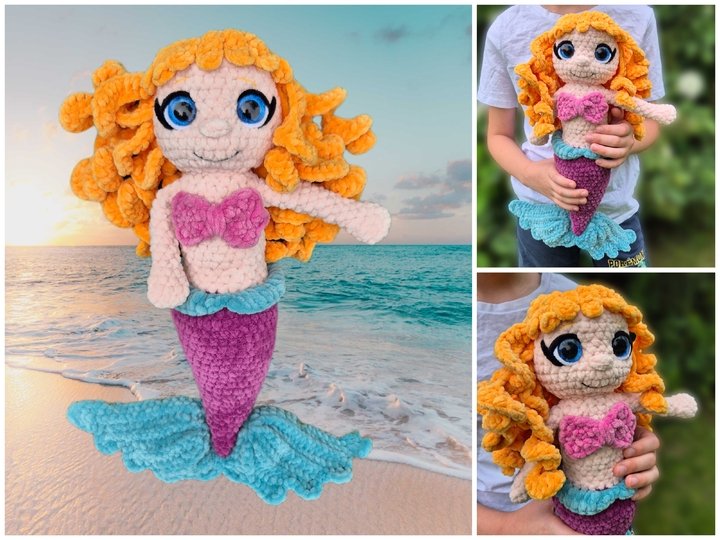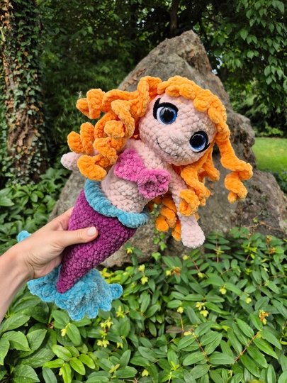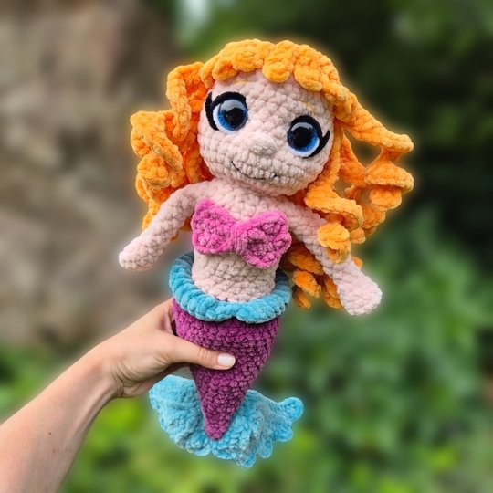 Mit dieser Anleitung lässt sich diese schöne und wirklich kuschelige Meerjungfrau nach häkeln.
