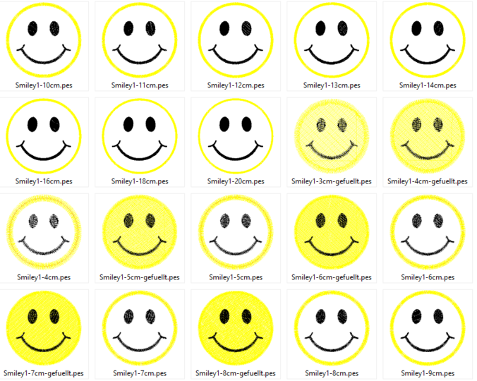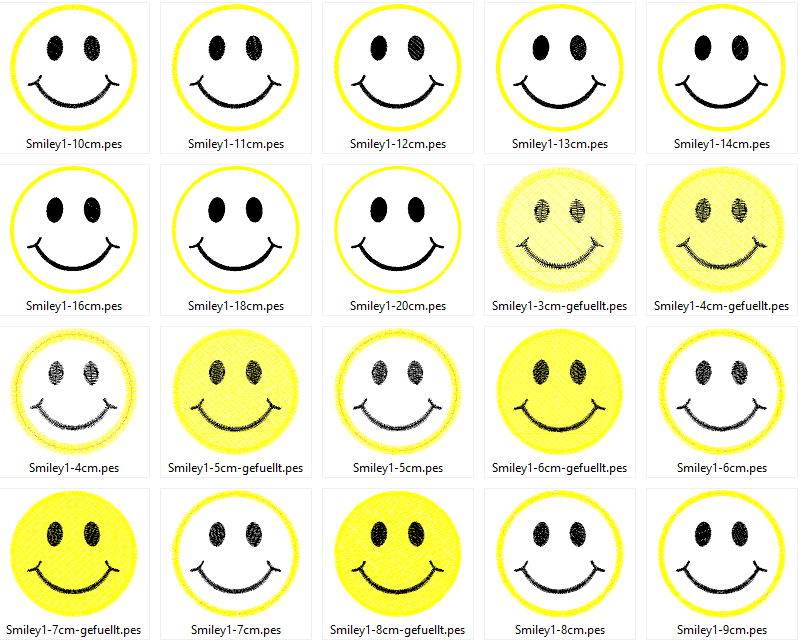 Ihr bekommt 2 Motive in je 14 Größen von 3 bis 20cm