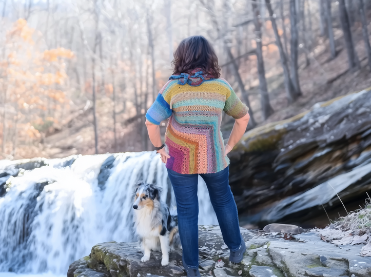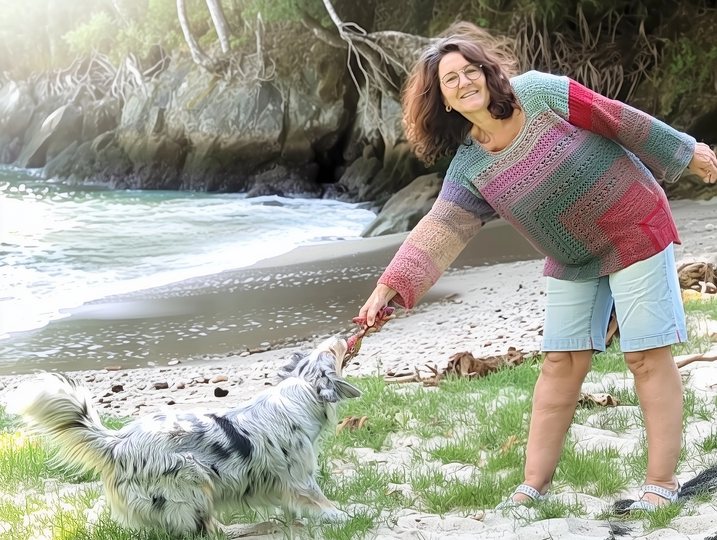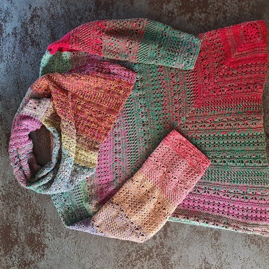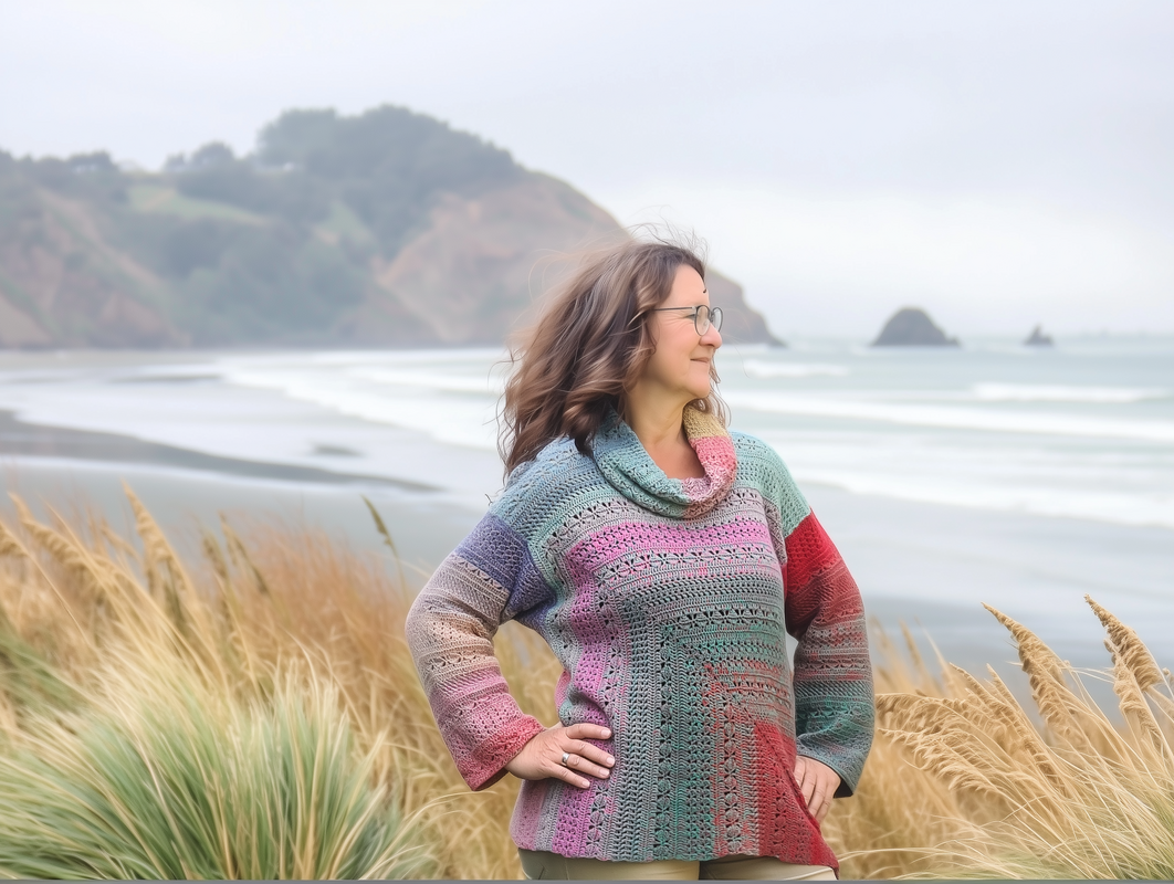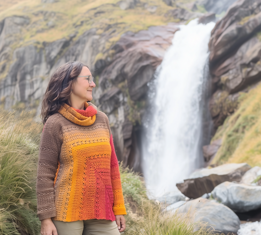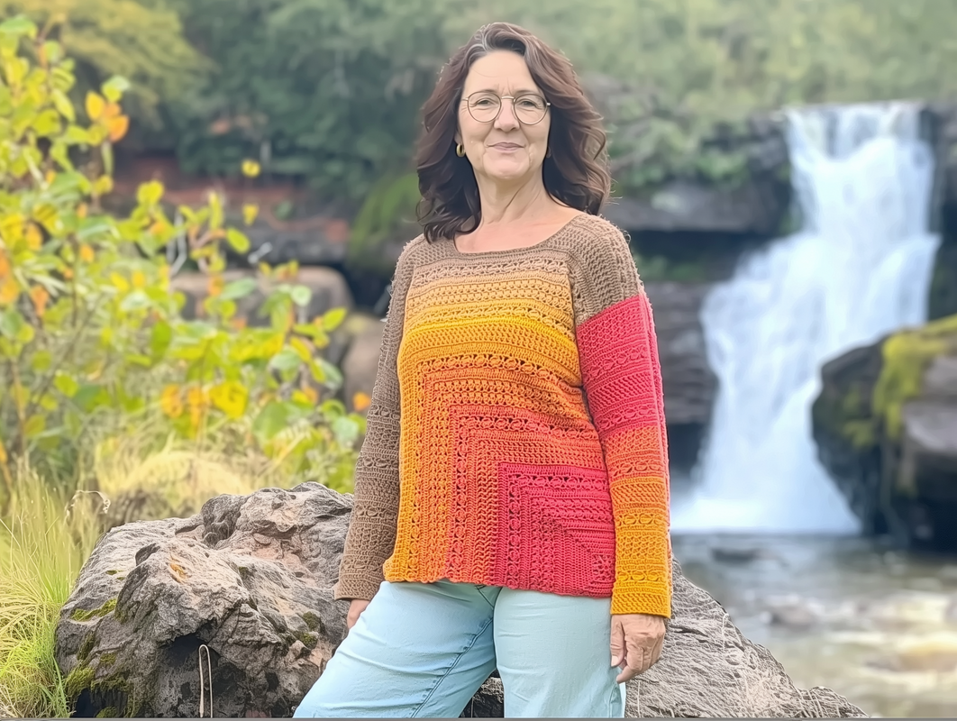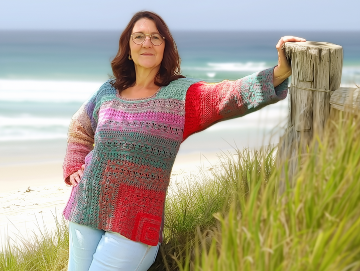 Du beginnst ganz unscheinbar – mit einem kleinen, dekorativen Granny-Eckelement. Doch Masche für Masche wächst daraus dein neuer Lieblingspulli: locker, bequem und mit einem Farbverlauf, der sich über Vorder- und Rückenteil wie von selbst entfaltet.