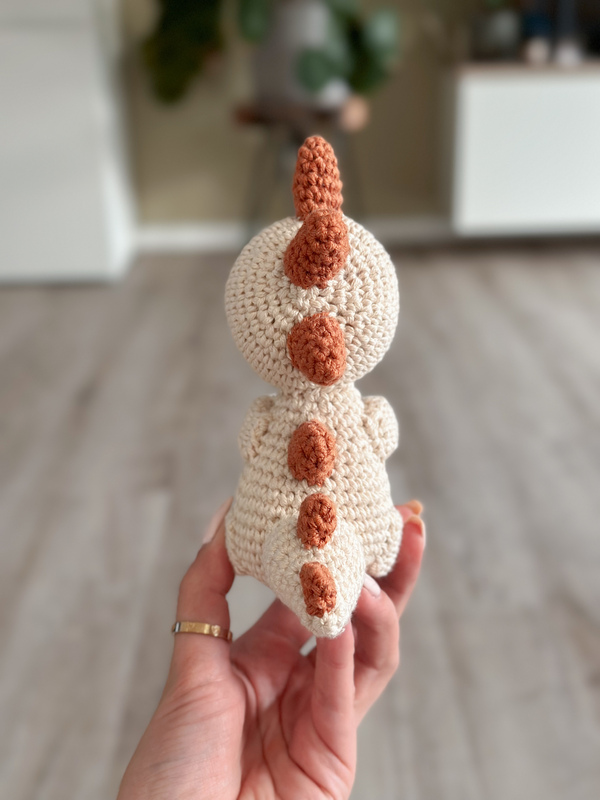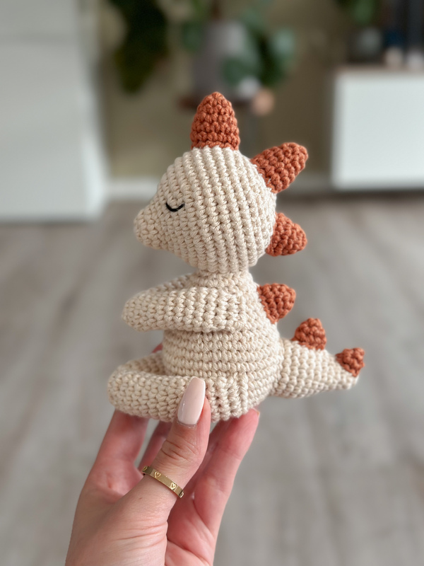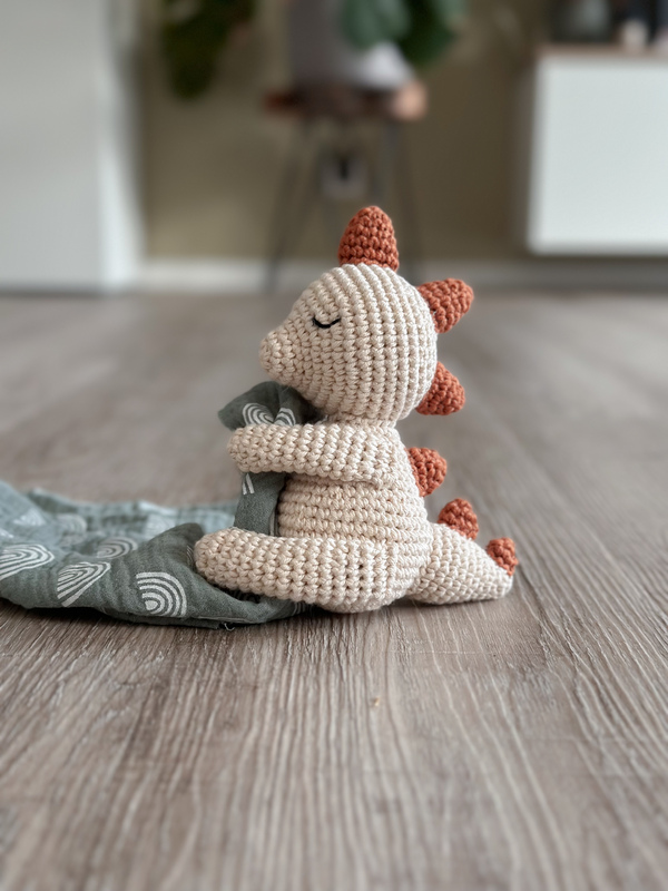 Leicht zu folgende Häkelanleitung mit Bildern für einen Schmuse Dino, der alle Kinderaugen zum Strahlen bringt. Ob für die eigenen Kleinen oder als Geschenk, dieser kleine Dino ist immer ein Hingucker!