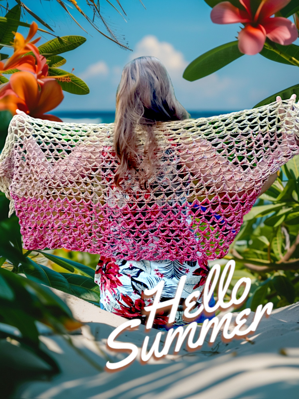 Entdecke die Vielseitigkeit dieser Häkelanleitung: Pareo und Schultertuch 2 in 1 "Hüftgold". Dieses einzigartige Stück kann sowohl als eleganter Pareo am Strand als auch als schickes Schultertuch oder zum Bolero geknotet für kühle Abende getragen werden.