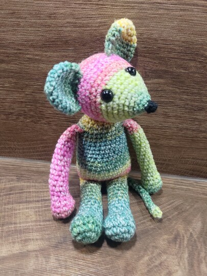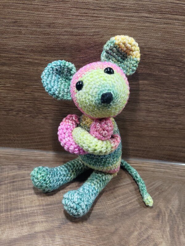 Bei Nutzung der angegebenen Wolle wird meine Schlenkermaus ca. 25 cm groß. Die Maus ist schnell gehäkelt und ist ein gutes Wochenendprojekt.