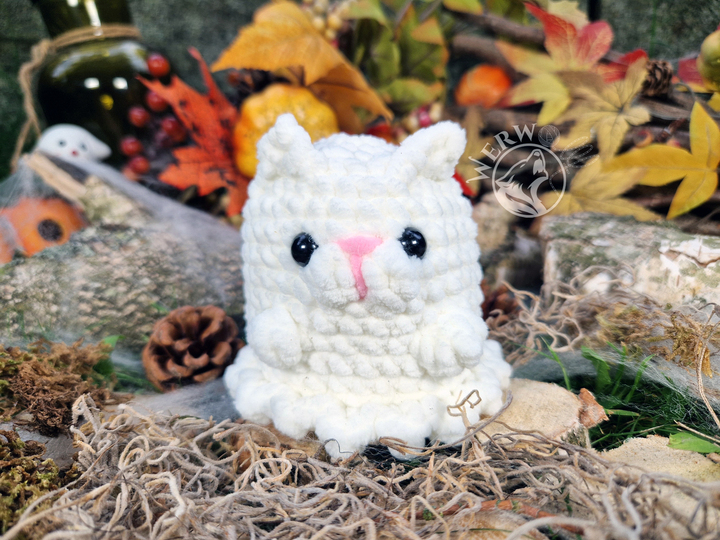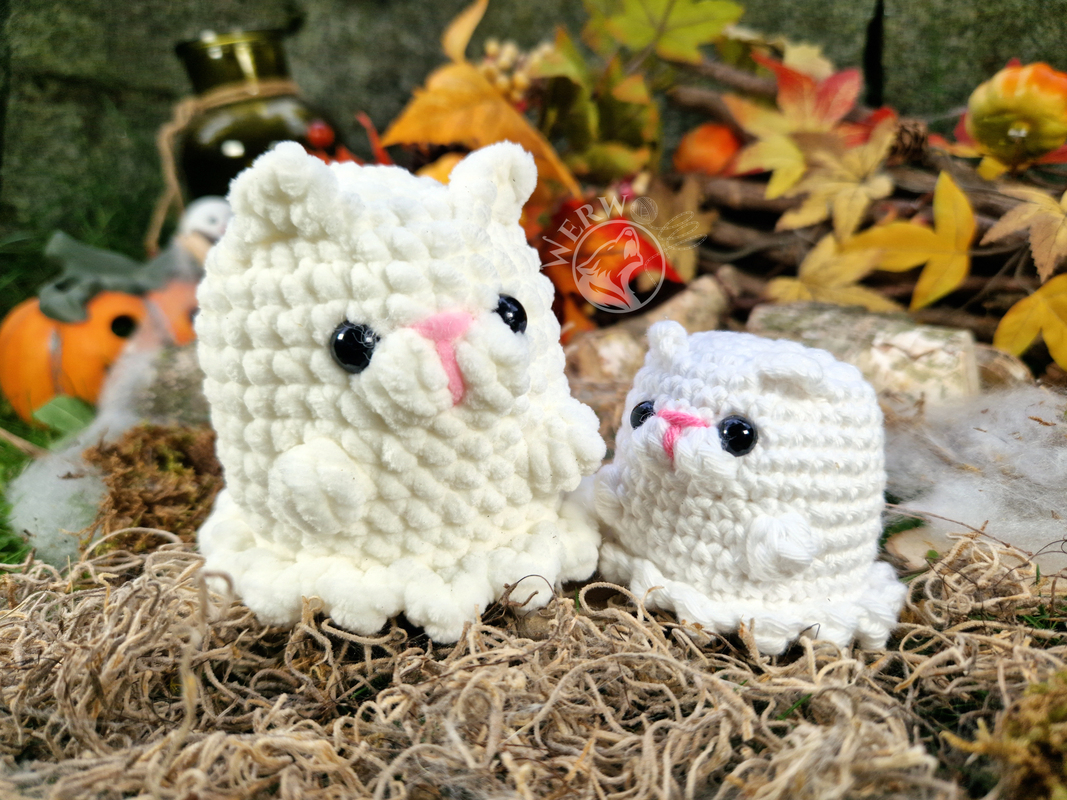 Dies ist eine schriftliche Anleitung um eine Geisterkatze zu häkeln.