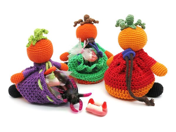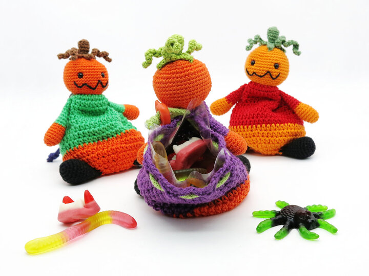 Diese niedlichen Kürbis-Beutel lassen sich mit Süßem oder anderen kleinen Überraschungen befüllen.