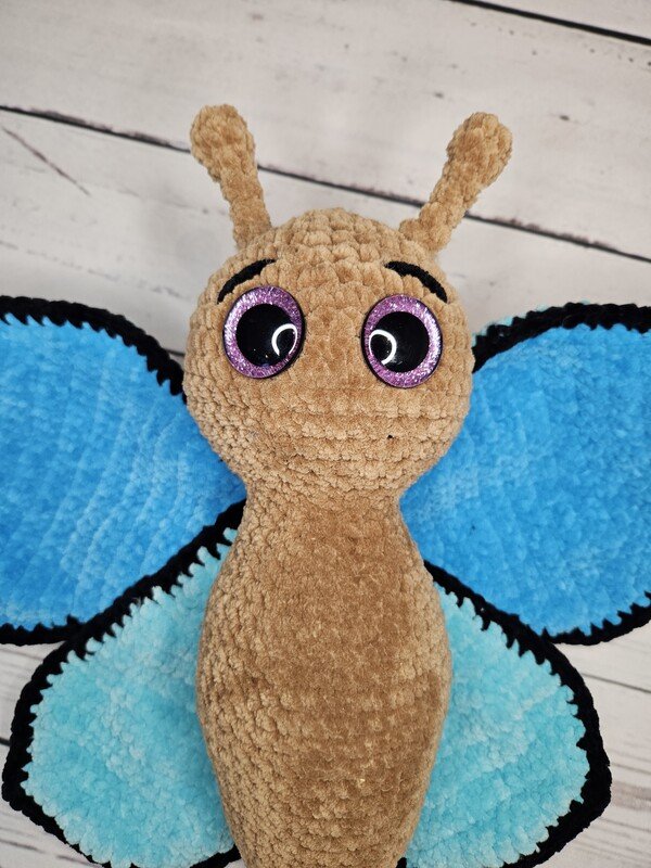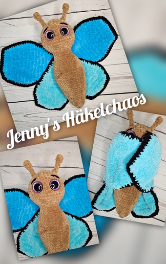 Eine detaillierte Anleitung für den bezaubernden Schmetterling. Dieser niedlicher Schmetterling bezaubert jeden mit seinen großen leuchtenden Augen und seinen prächtigen Flügeln. Er kann wunderbar zum kuscheln genutzt werden. Wenn die Flügel noch mit Watte gefüllt werden, kann dieser auch durch seine tolle Größe als Kuschelkissen genutzt werden.