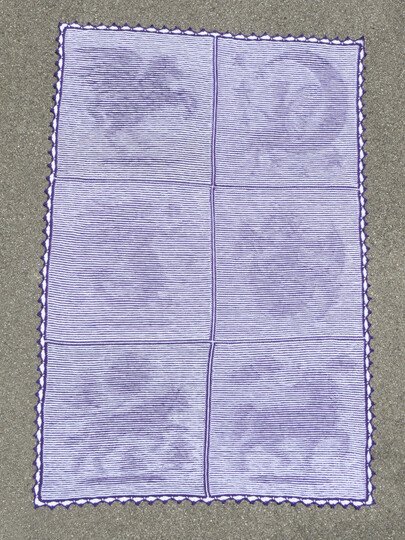 Diese Decke ist 2,34 x 1,56 Meter groß und wiegt ohne Bordüre 1675 Gramm und komplett mit der Bordüre 1782 Gramm.