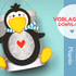 Toll für St. Martin oder als Deko für das Kinderzimmer: Sofort-Download mit allen Vorlagen sowie ausführlicher Anleitung in deutscher Sprache zum Basteln der süssen Pinguin-Laterne. Der Pinguin hat lustige Papierdraht-Beine und durch seinen Bauch (mit Herz) scheint die Laterne durch. Die klassische Laternenschachtel-/Käseschachtellaterne ist stabil aber dennoch leicht.